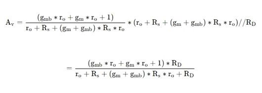 所以,綜上所述,整個由于背柵電壓引起的增益之和為( g m b ? r o + g m ? r o + 1 ) 。