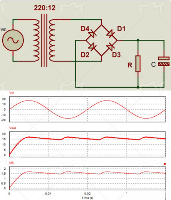 帶濾波電容的橋式整流電路