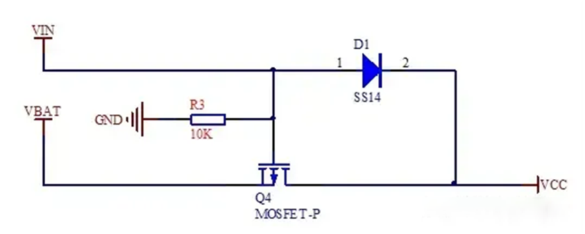 肖特基二極管雖能實(shí)現(xiàn)單向?qū)?,但仍有零點(diǎn)幾伏的壓降,5V 外部電壓經(jīng)其降壓后僅剩 4V 多,這造成的功率損耗會(huì)影響設(shè)備性能。而且外部電源供電時(shí),會(huì)通過 P 型 MOS 管的體二極管對(duì)電池非正規(guī)充電,雖可通過翻轉(zhuǎn) Q4緩解,但不能徹底解決問題。
