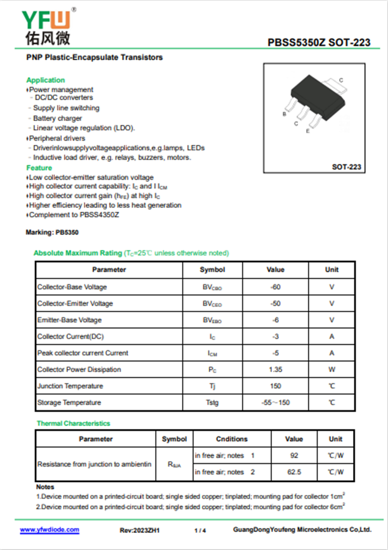 佑風微原廠三極管PBSS5350Z中文資料,PDF數(shù)據(jù)手冊,引腳圖,封裝規(guī)格,廠家原廠,找PBSS5350Z上佑風微電子官網(wǎng)