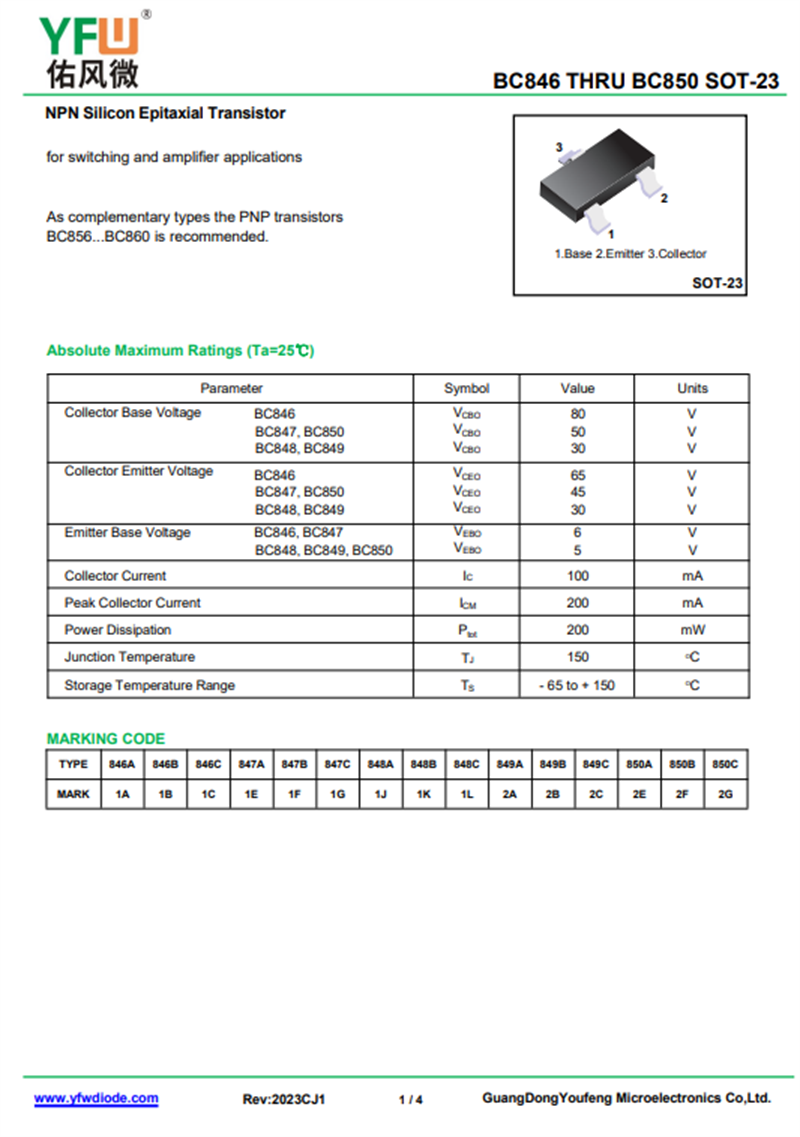 佑風(fēng)微原廠(chǎng)三極管BC846A中文資料,PDF數(shù)據(jù)手冊(cè),引腳圖,封裝規(guī)格,廠(chǎng)家原廠(chǎng),找BC846A上佑風(fēng)微電子官網(wǎng)