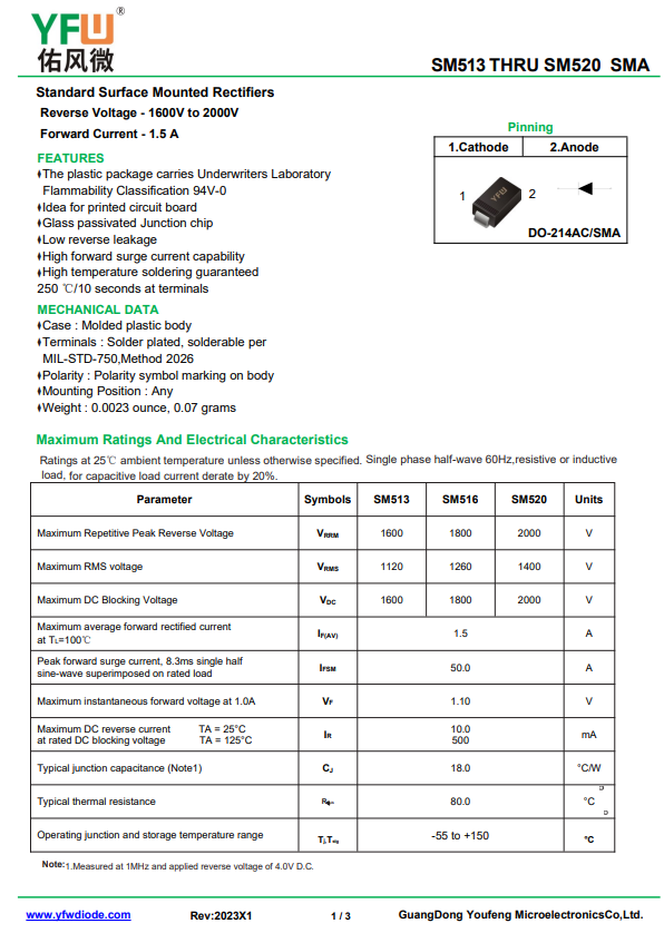 佑風(fēng)微原廠高壓二極管SM520中文資料,PDF數(shù)據(jù)手冊,引腳圖,封裝規(guī)格,廠家原廠,找SM520上佑風(fēng)微電子官網(wǎng)