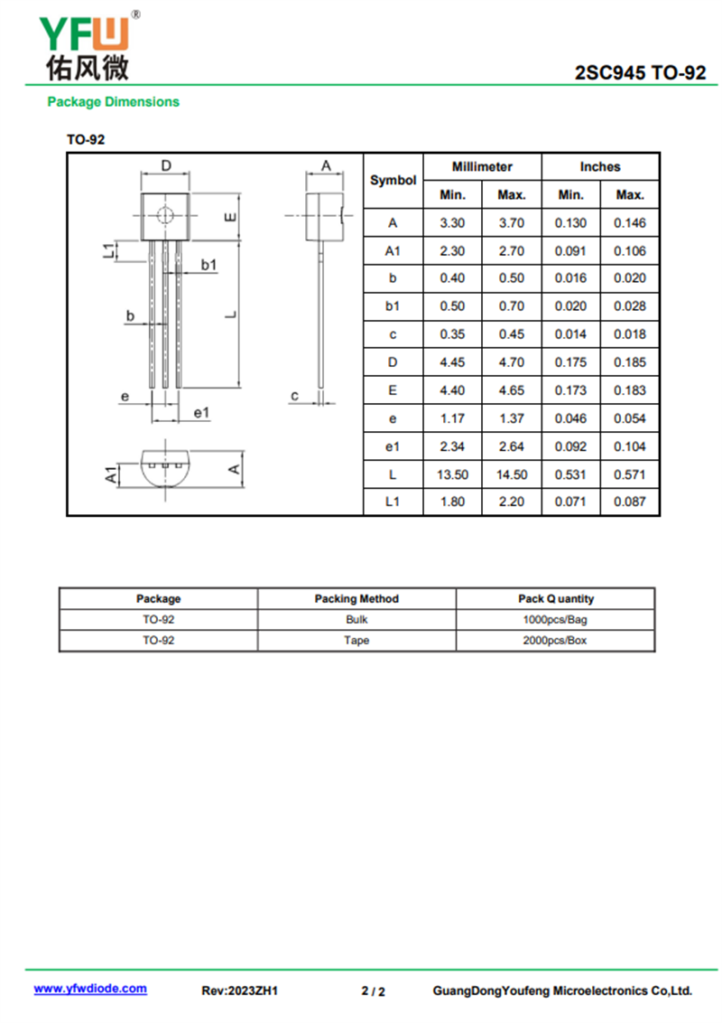 佑風微原廠三極管 2SC945中文資料,PDF數(shù)據(jù)手冊,引腳圖,封裝規(guī)格,廠家原廠,找2SC945上佑風微電子官網(wǎng)