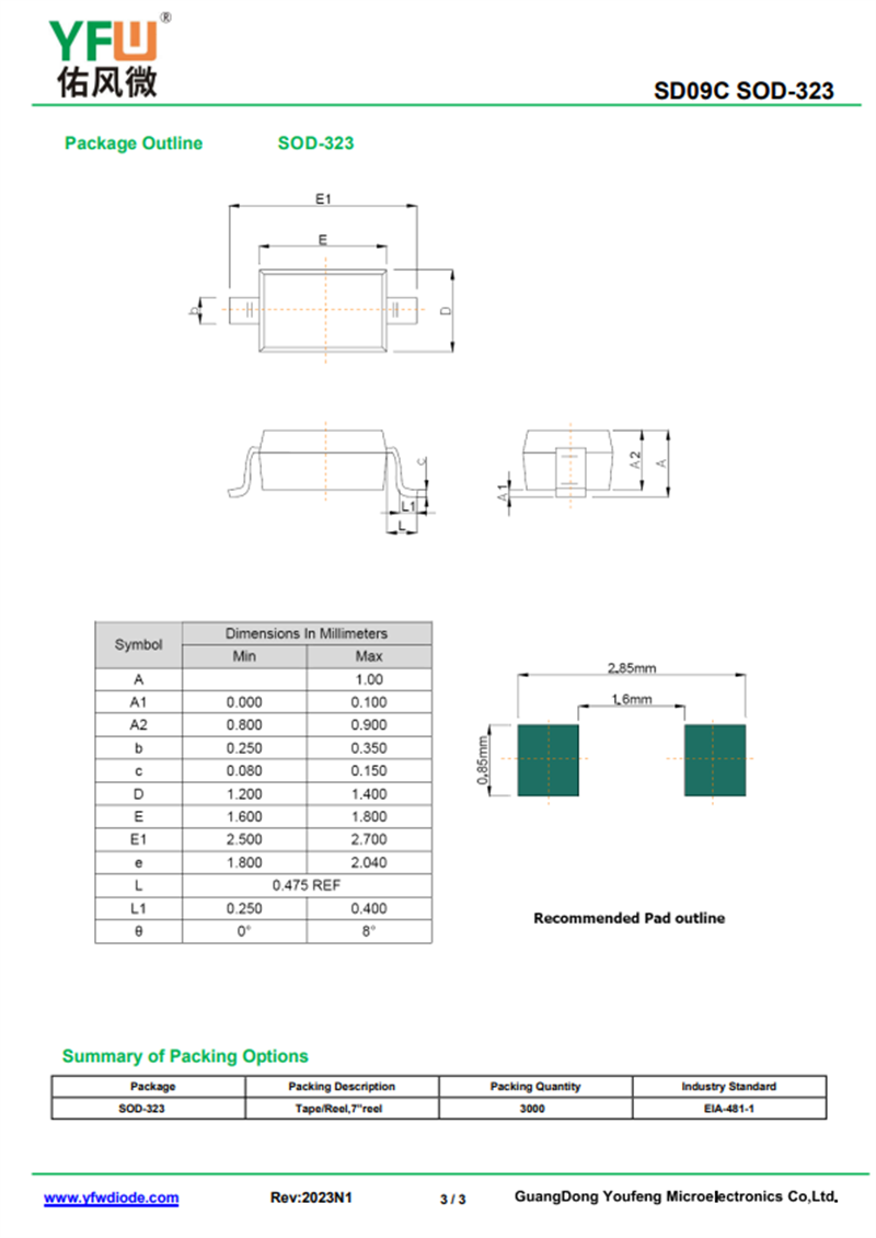 SD09C SOD-323瞬態(tài)抑制二極管佑風(fēng)微