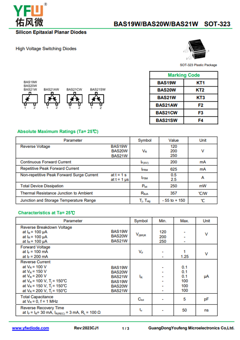 佑風(fēng)微原廠三極管BAS21W中文資料,PDF數(shù)據(jù)手冊(cè),引腳圖,封裝規(guī)格,廠家原廠,找BAS21W上佑風(fēng)微電子官網(wǎng)