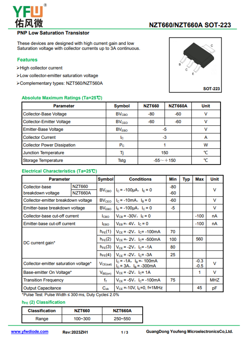 佑風微原廠三極管 NZT660中文資料,PDF數(shù)據(jù)手冊,引腳圖,封裝規(guī)格,廠家原廠,找NZT660上佑風微電子官網(wǎng)