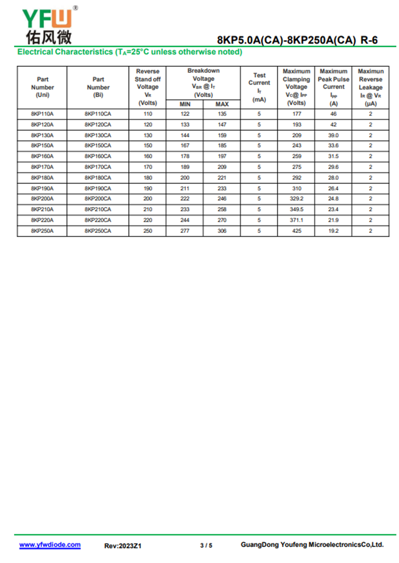 佑風(fēng)微原廠瞬態(tài)抑制二極管8KP250CA中文資料,PDF數(shù)據(jù)手冊(cè),引腳圖,封裝規(guī)格,廠家原廠,找8KP250CA上佑風(fēng)微電子官網(wǎng)