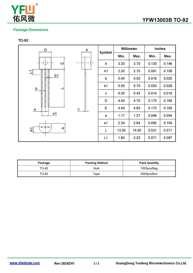 佑風微原廠 晶體管YFW13003B 中文資料,PDF數(shù)據(jù)手冊,引腳圖,封裝規(guī)格,廠家原廠,找YFW13003B上佑風微電子官網(wǎng)