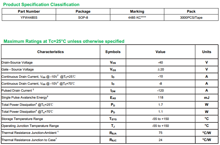 yfwdiode,MOSFEL YFW4485S data,PDF data book,Pin figure,Packaging specifications,Diode manufacturer YFW4485S diode