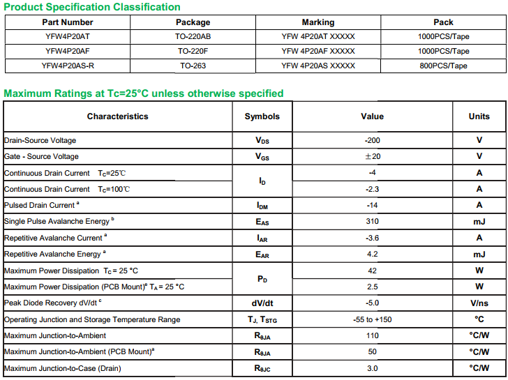 yfwdiode,MOSFEL YFW4P20AS data,PDF data book,Pin figure,Packaging specifications,Diode manufacturer YFW4P20AS diode