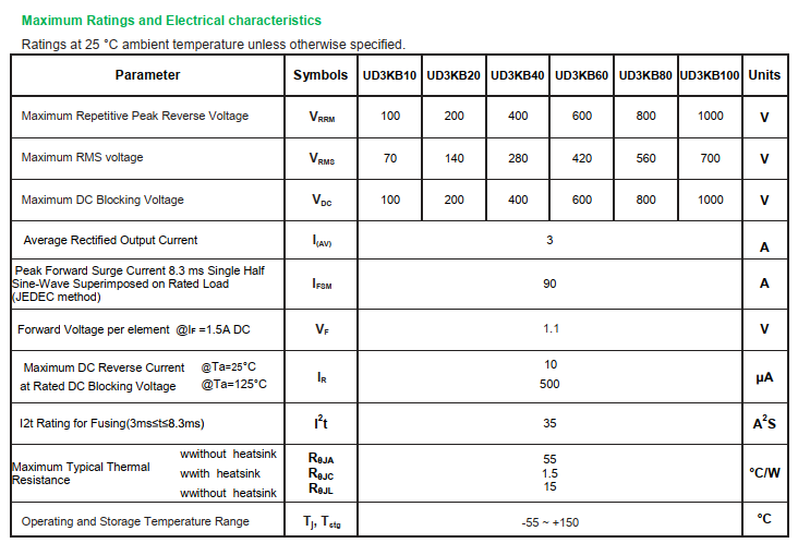yfwdiode,Rectifier Bridge UD3KB100 data,PDF data book,Pin figure,Packaging specifications,Diode manufacturer UD3KB100 diode