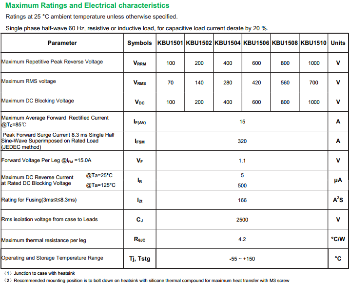 yfwdiode,Rectifier Bridge KBU1501 data,PDF data book,Pin figure,Packaging specifications,Diode manufacturer KBU1501 diode