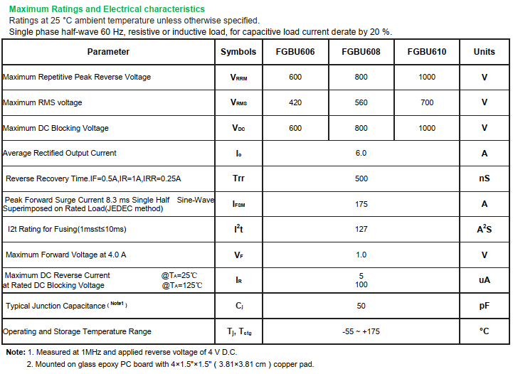 yfwdiode,Fast Recovery Rectifier Bridge FGBU606 data,PDF data book,Pin figure,Packaging specifications,Diode manufacturer FGBU606 diode