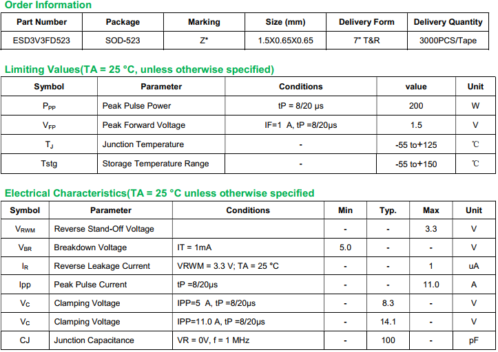 yfwdiode,Transient Voltage Suppressor ESD5V0FBD523 data,PDF data book,Pin figure,Packaging specifications,Diode manufacturer ESD5V0FBD523 diode