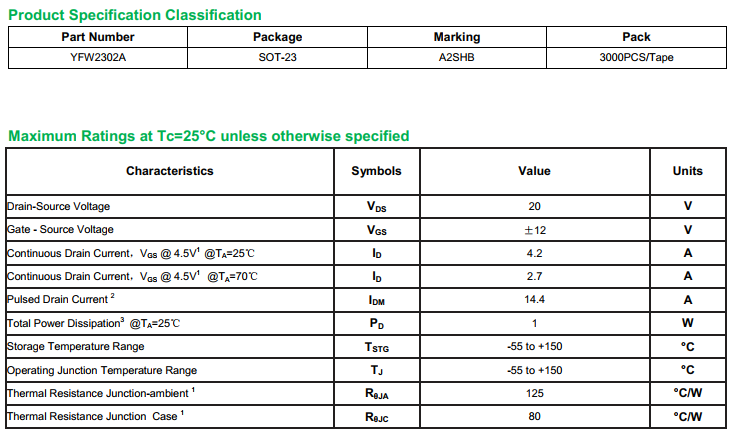 YFW2302A SOT-23_Marking:A2SHB Mosfet_YFW brand