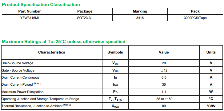 yfwdiode,Mosfet YFW3416MI data,PDF data book,Pin figure,Packaging specifications,Diode manufacturer YFW3416MI diode