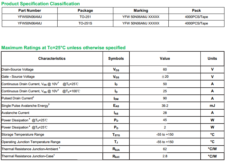 YFW50N06AMJ TO-251S_Marking:YFW 50N06AMJ XXXXX Mosfet_YFW brand