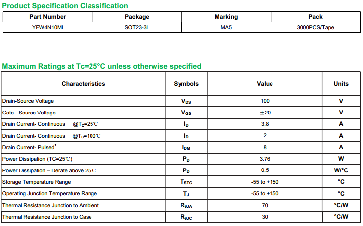 yfwdiode,Mosfet YFW4N10MI data,PDF data book,Pin figure,Packaging specifications,Diode manufacturer YFW4N10MI diode