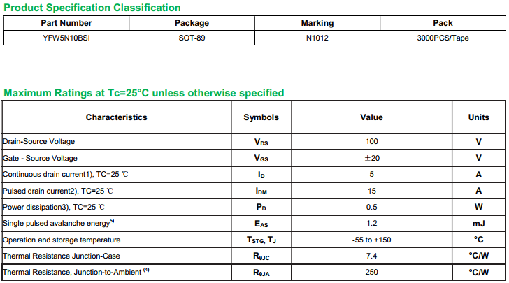 yfwdiode,Mosfet YFW5N10BSI data,PDF data book,Pin figure,Packaging specifications,Diode manufacturer YFW5N10BSI diode