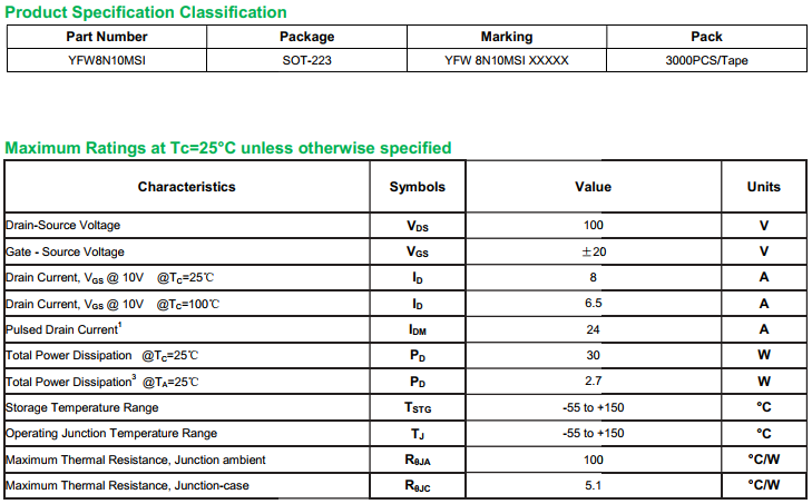 yfwdiode,Mosfet YFW8N10MSI data,PDF data book,Pin figure,Packaging specifications,Diode manufacturer YFW8N10MSI diode