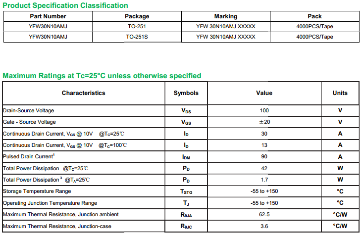 yfwdiode,Mosfet YFW30N10AMJ data,PDF data book,Pin figure,Packaging specifications,Diode manufacturer YFW30N10AMJ diode
