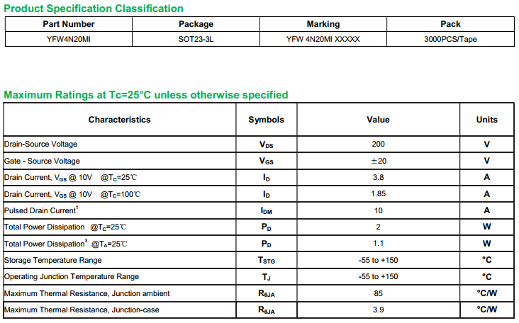 yfwdiode,Mosfet YFW4N20MI data,PDF data book,Pin figure,Packaging specifications,Diode manufacturer YFW4N20MI diode