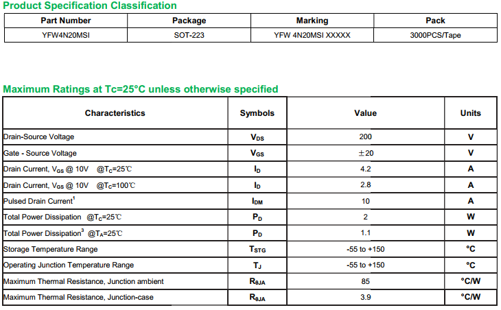 yfwdiode,Mosfet YFW4N20MSI data,PDF data book,Pin figure,Packaging specifications,Diode manufacturer YFW4N20MSI diode