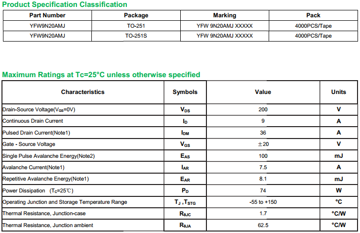 yfwdiode,Mosfet YFW9N20AMJ data,PDF data book,Pin figure,Packaging specifications,Diode manufacturer YFW9N20AMJ diode