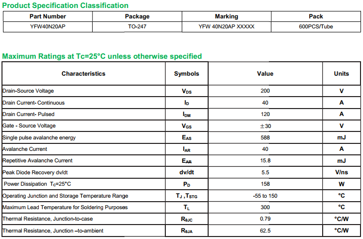 yfwdiode,Mosfet YFW40N20AP data,PDF data book,Pin figure,Packaging specifications,Diode manufacturer YFW40N20AP diode