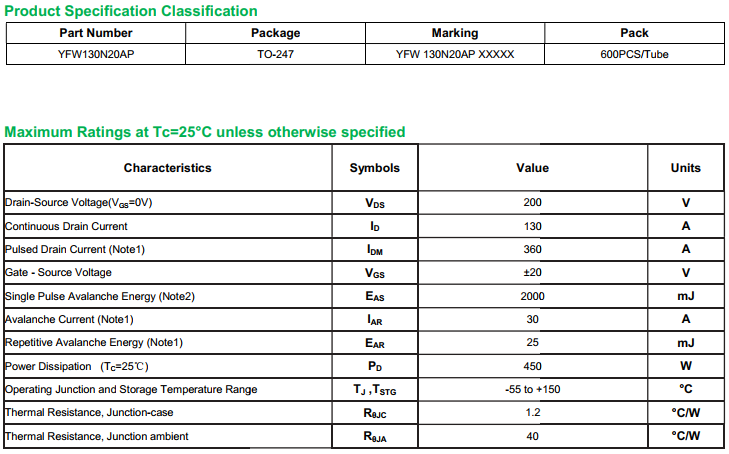 yfwdiode,Mosfet YFW130N20AP data,PDF data book,Pin figure,Packaging specifications,Diode manufacturer YFW130N20AP diode