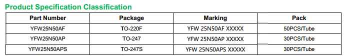 yfwdiode,Mosfet YFW25N50APS data,PDF data book,Pin figure,Packaging specifications,Diode manufacturer YFW25N50APS diode