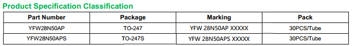 yfwdiode,Mosfet YFW28N50APS data,PDF data book,Pin figure,Packaging specifications,Diode manufacturer YFW28N50APS diode