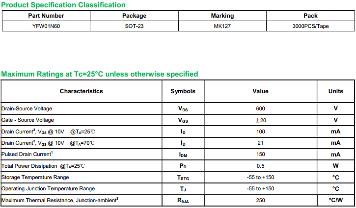 yfwdiode,Mosfet YFW01N60 data,PDF data book,Pin figure,Packaging specifications,Diode manufacturer YFW01N60 diode