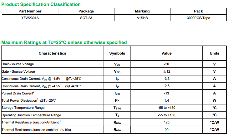 yfwdiode,Mosfet YFW2301A data,PDF data book,Pin figure,Packaging specifications,Diode manufacturer YFW2301A diode