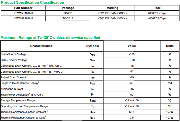 yfwdiode,Mosfet YFW15P10AMJ data,PDF data book,Pin figure,Packaging specifications,Diode manufacturer YFW15P10AMJ diode