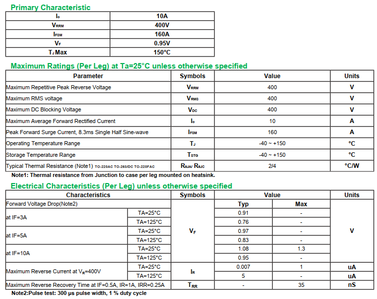 yfwdiode,Fast Recovery Rectifier Diode MUR1040 data,PDF data book,Pin figure,Packaging specifications,Diode manufacturer MUR1040 diode