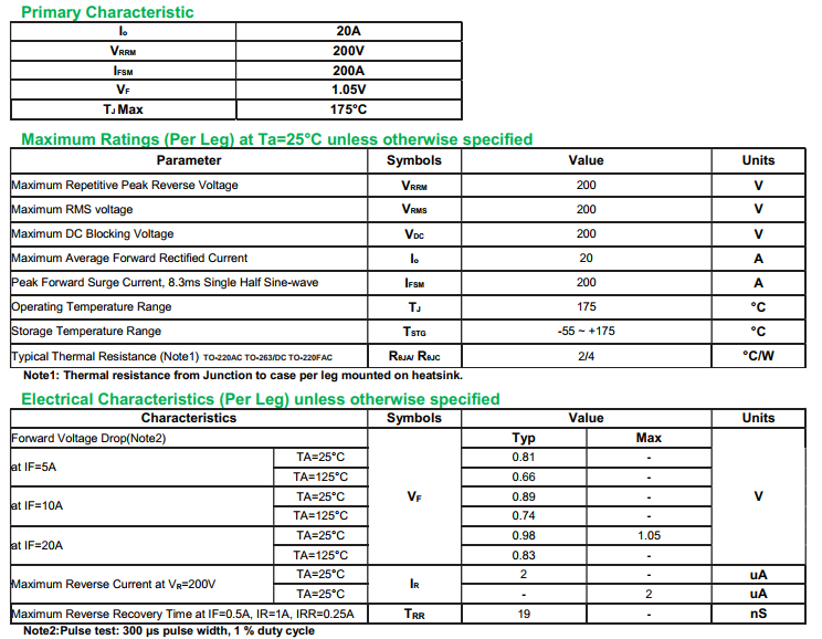yfwdiode,Fast Recovery Rectifier Diode MUR2020DC data,PDF data book,Pin figure,Packaging specifications,Diode manufacturer MUR2020DC diode