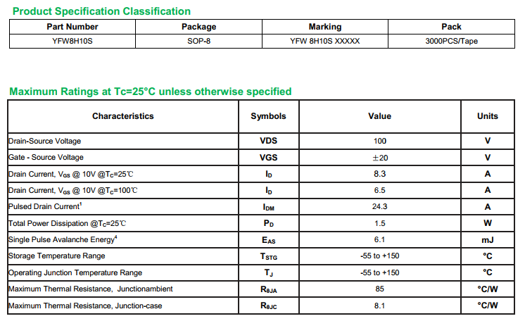 yfwdiode,MOSFEL YFW8H10S data,PDF data book,Pin figure,Packaging specifications,Diode manufacturer YFW8H10S diode