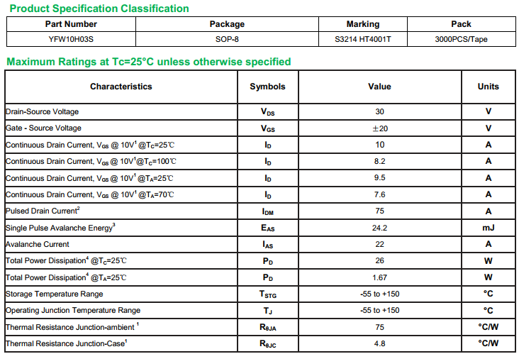 yfwdiode,MOSFEL YFW10H03S data,PDF data book,Pin figure,Packaging specifications,Diode manufacturer YFW10H03S diode