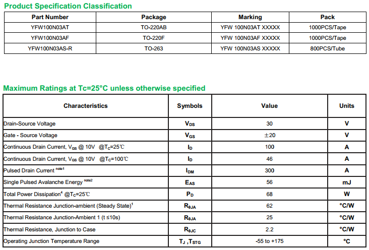 yfwdiode,MOSFEL YFW100N03AT data,PDF data book,Pin figure,Packaging specifications,Diode manufacturer YFW100N03AT diode