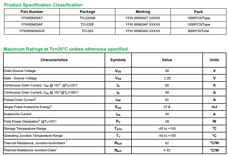 yfwdiode,MOSFEL YFW60N03AS data,PDF data book,Pin figure,Packaging specifications,Diode manufacturer YFW60N03AS diode