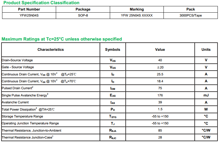 yfwdiode,MOSFEL YFW25N04S data,PDF data book,Pin figure,Packaging specifications,Diode manufacturer YFW25N04S diode