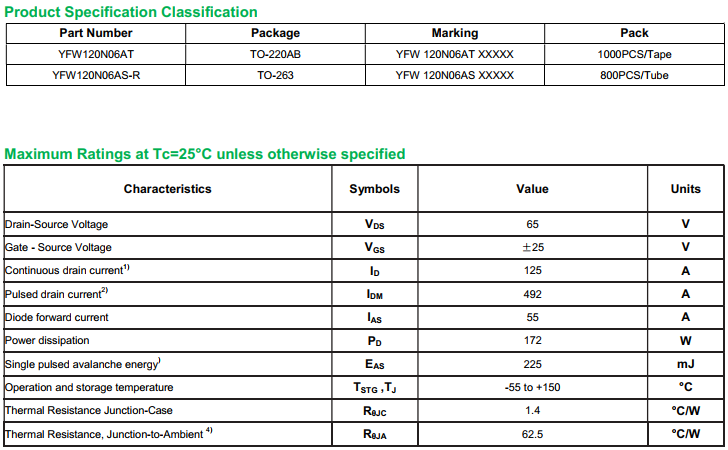 yfwdiode,MOSFEL YFW120N06AS data,PDF data book,Pin figure,Packaging specifications,Diode manufacturer YFW120N06AS diode