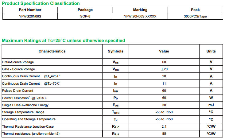 yfwdiode,MOSFEL YFWG20N06S data,PDF data book,Pin figure,Packaging specifications,Diode manufacturer YFWG20N06S diode