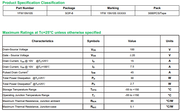 yfwdiode,MOSFEL YFW15N10S data,PDF data book,Pin figure,Packaging specifications,Diode manufacturer YFW15N10S diode