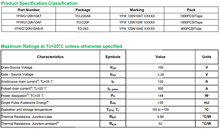 yfwdiode,MOSFEL YFWG120N10AS data,PDF data book,Pin figure,Packaging specifications,Diode manufacturer YFWG120N10AS diode
