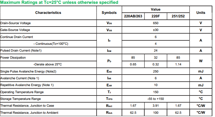 yfwdiode,MOSFEL YFW6N65AS data,PDF data book,Pin figure,Packaging specifications,Diode manufacturer YFW6N65AS diode
