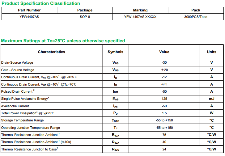 yfwdiode,MOSFEL YFW4407AS data,PDF data book,Pin figure,Packaging specifications,Diode manufacturer YFW4407AS diode