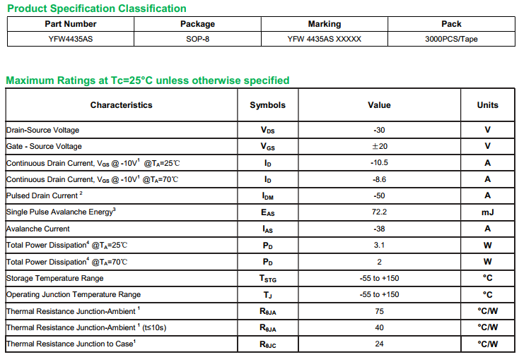 yfwdiode,MOSFEL YFW4435AS data,PDF data book,Pin figure,Packaging specifications,Diode manufacturer YFW4435AS diode