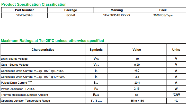 yfwdiode,MOSFEL YFW9435AS data,PDF data book,Pin figure,Packaging specifications,Diode manufacturer YFW9435AS diode